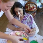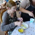 - Dna. Gladis preparando as bolachas para receber a decoração