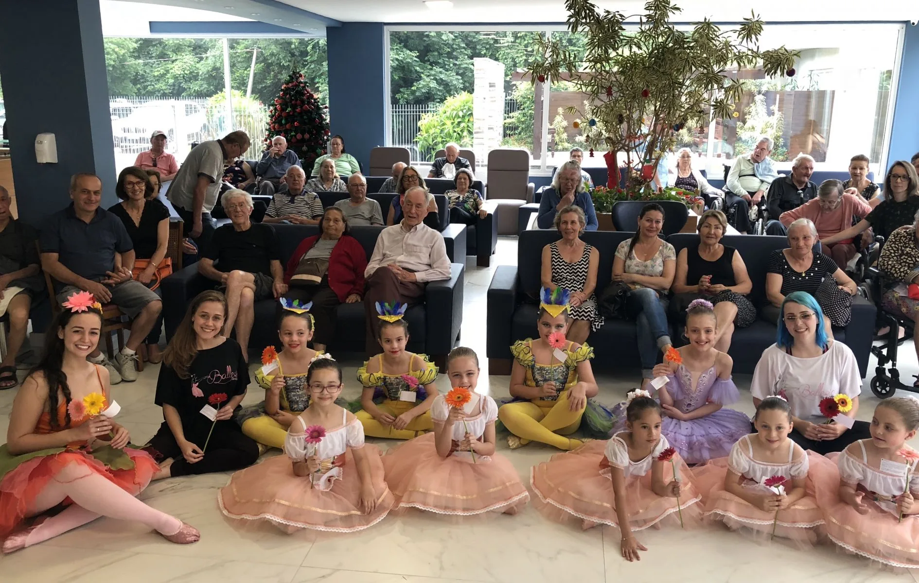 No espetáculo as bailarinas dançaram e representaram os seres vivos encantados que habitam esta Floresta como borboletas, árvores, flores e pássaros. O  show encantou não só aos idosos como  também a todo o público presente.